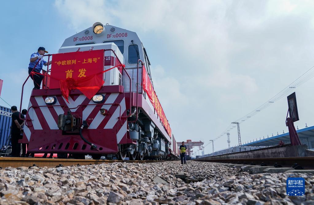 2021年9月28日,“上海号”中欧班列首次从上海开行,驶向德国汉堡。新华社记者 丁汀 摄
